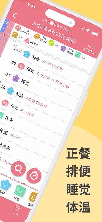 支持记录母乳、牛奶、尿布、睡眠、体温、身高、体重等多种信息,满足全方位育儿需求。