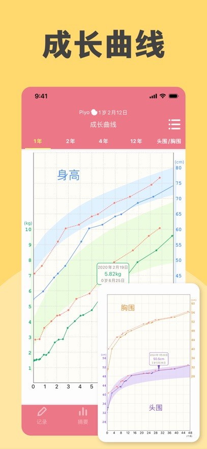 1、提供多维度成长数据分析,自动生成喂养量、睡眠时长、排便情况等周变化图表,并结合标准成长曲线追踪婴儿身高、体重发育状况。