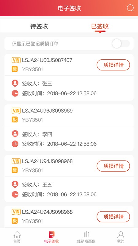 支持在线签收流程,无需亲自前往物流点即可完成签收操作。提供了车辆质量损坏情况的查询服务。
