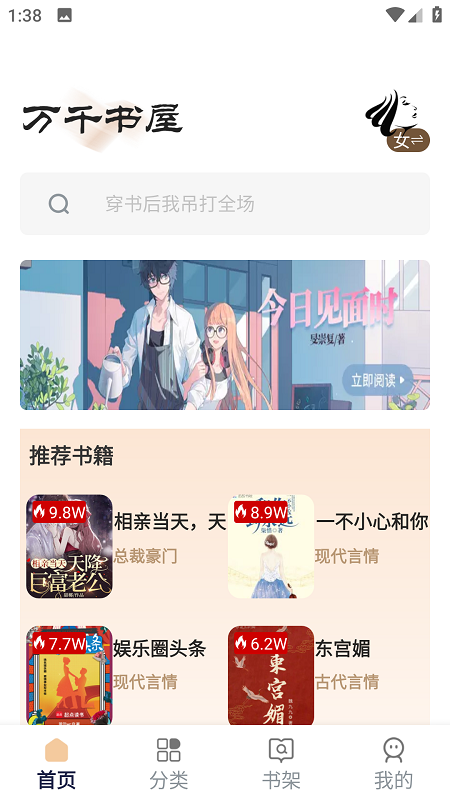 万千书屋app为大家带来了多种多样的小说资源,在这里可以自由阅读心仪的小说,全网的小说都可以轻松找到。平台上带来的新小说和热门小说都可以及时查看,收藏小说很方便,每次更新快速提醒,追新的小说也就更加的便捷了。