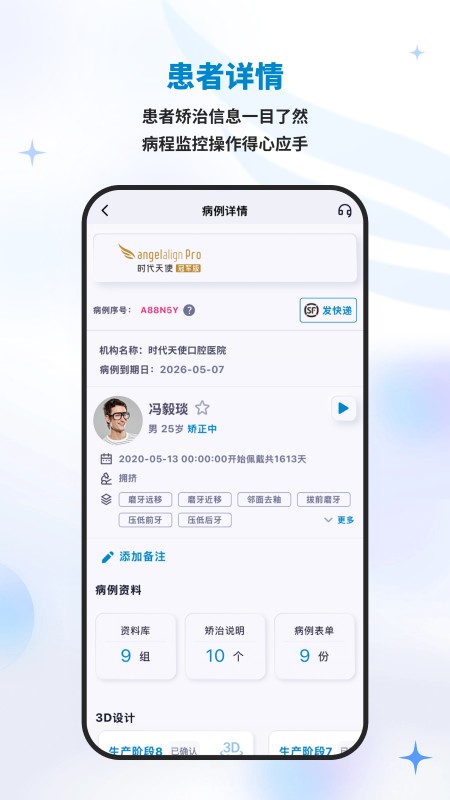 医生可以通过病例管理功能提交新的病例,设计矫正方案,修改现有的病例,并对病例进行智能管理。