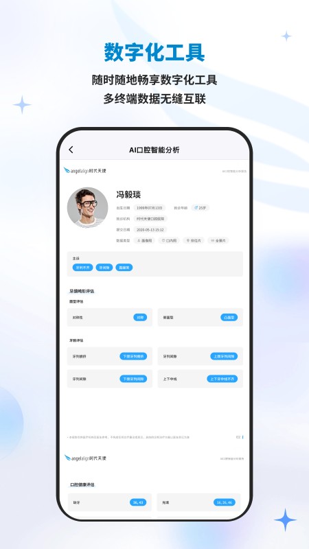 2、内置AI驱动的智能分析系统,自动生成结构化口腔评估报告,涵盖面型分析、牙弓匹配度等关键指标,提升医患沟通效率。