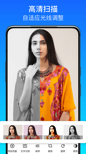 3、图片转文字支持多种颜色模式,变灰、黑白、变亮、护眼轻松实现。支持裁剪、旋转,快速将纸质文件转为清晰的电子版