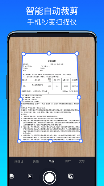 5、扫描任何文件,该App可以扫描的种类包括标准纸质文档、白色书写板、PPT、名片、收据、笔记、报纸文章等。