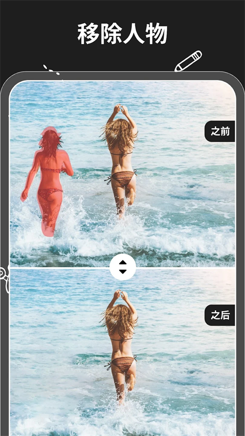 功能强大且操作简便的图片处理工具,它凭借深度学习算法和AI技术,为用户提供了高效、精准的图像处理体验。内置强大的橡皮擦工具,能够迅速精确地删除照片中的不需要的物体,如人、物、文字、水印等。只需选择要删除的区域,AI将智能识别并自动补全背景,恢复图像的自然效果。