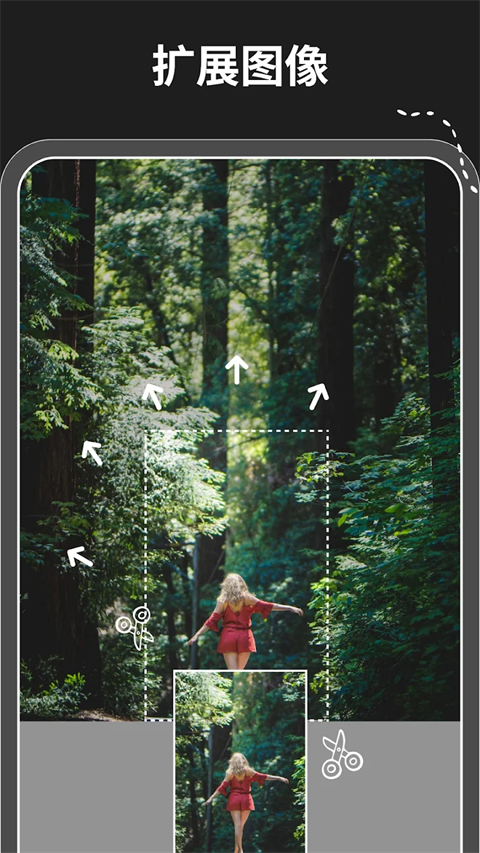 1、通过AI驱动的图像扩展技术,用户可以将照片的边界智能扩展,达到理想的尺寸。