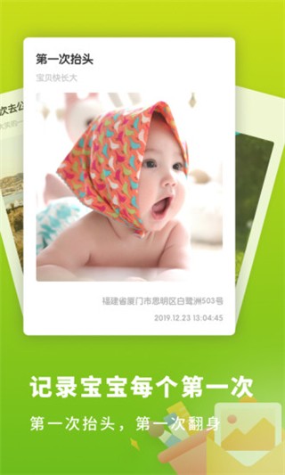 1、以照片、视频及文字记录宝宝成长,支持免费原图上传和不限量安全存储。