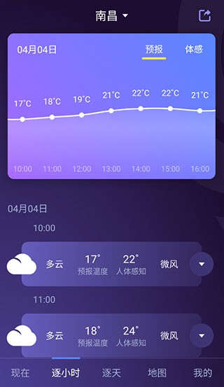 4、而且还支持逐小时查看天气情况,未来天气一目了然。
