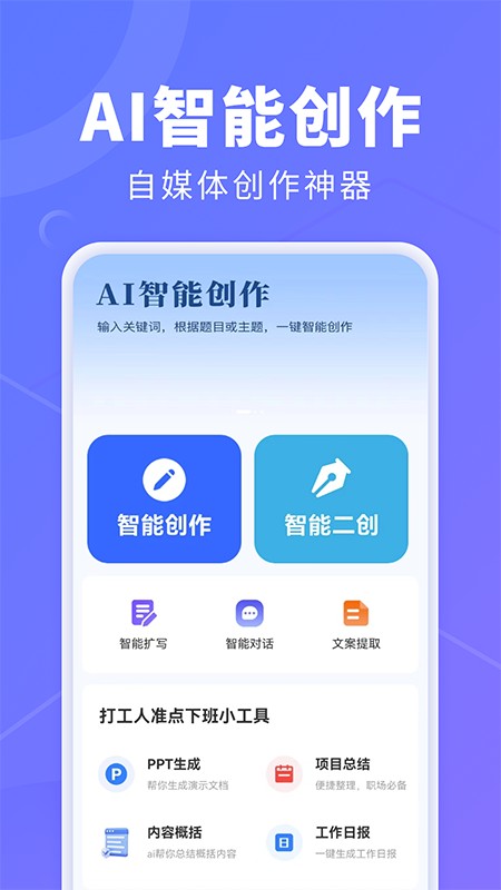 2、整合多种功能,如一键生成、一键续写、文案提取和改写等,快速创作高质量的原创内容。