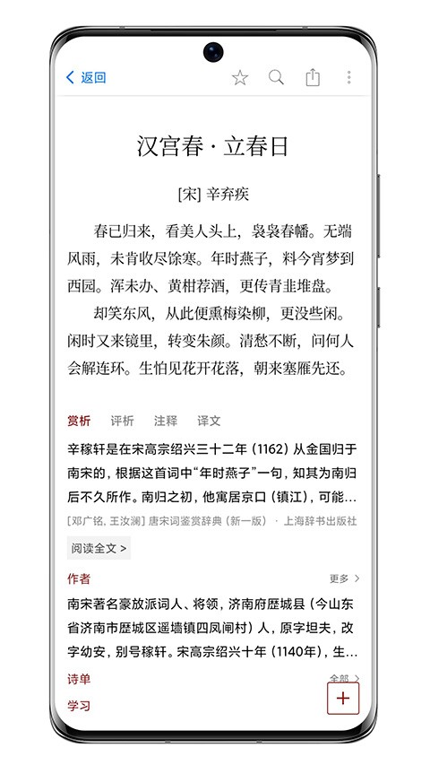 1、每首诗词附有详尽的注释、译文和赏析,帮助用户理解诗词内涵与创作背景。
