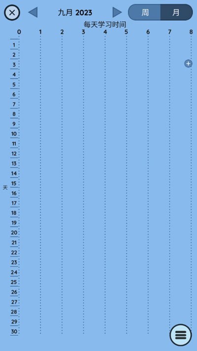 3、一个学习记录图表,一天之中,每学习半个小时,就会有一个小圆圈添加到不同的时间段当中。