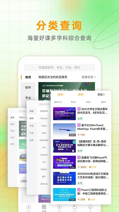 日常丰富的仿真知识学习资源,超过150G的CAE软件学习资料、上千多种的免费视频课程等。包含了几十种行业、学科,满足不同领域用户的学习需求。