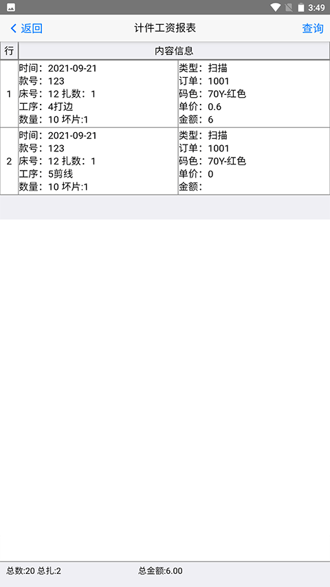 1、查询产量及对数单,可以对计件工资、出勤记录等做一个明细。
