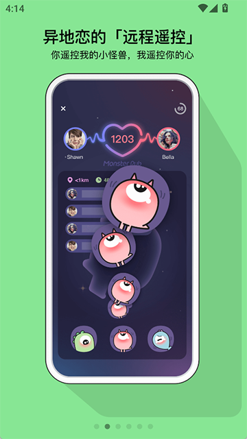怪兽派对是一款女性向生活服务类的应用软件,异地传情、声音交友等主体,支持触控、滑屏与动态捕捉的方式,对于一些异地情侣这个平台会邀请远程配对,在线实时进行沟通交流,还有声音匹配功能,找寻自己喜欢的声音,让你们零距离接触。