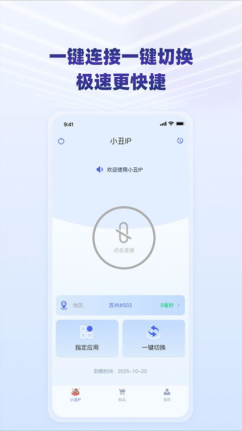 2、一键换IP功能,没有繁琐的配置,打开APP直接使用。