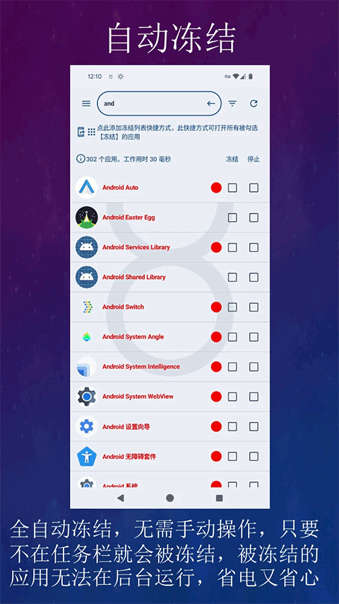 黑洞自动冻结是一款可以帮助用户冻结/停止后台部分应用的工具软件,更加省电省内存,手机运行的非常流畅,可以免root和root两种使用模式,搭建动态监测系统,识别出进程并限制资源,减少内存与电量消耗。