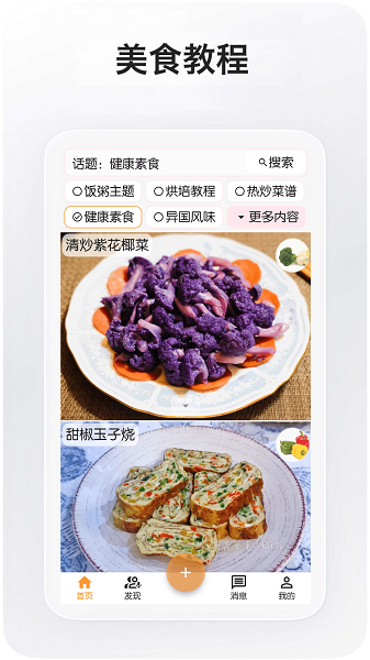 支持按标签、食材、话题和关键字搜索,方便快捷。