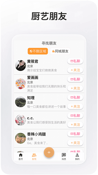 爱好美食的朋友相互沟通交流,也可以找到同城爱好美食的朋友们。