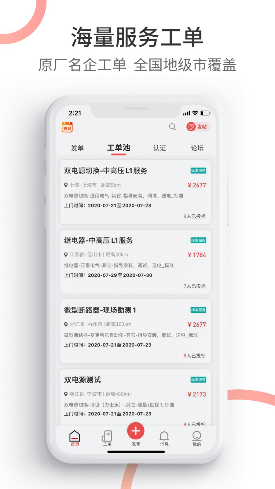 2、线上发布工单,整合了优质工单资源,推送给工业领域的朋友。
