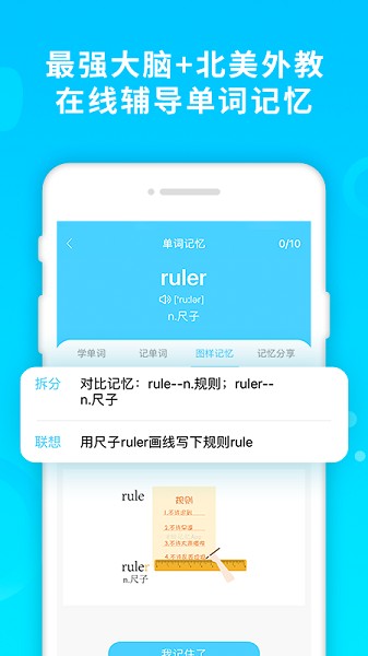 1、将趣味性的图样联想与科学的记忆算法相结合,创造出一种全新的高效学习模式,使学习不再枯燥乏味。