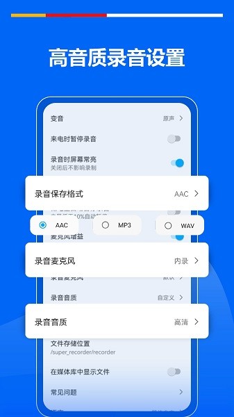 可以自由切换文件格式,支持mp3/aac/m4a/amr等格式