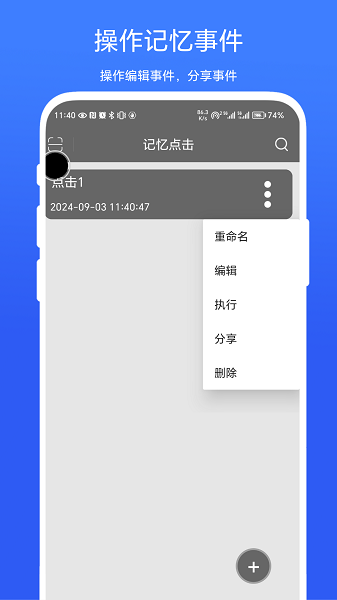 记忆点击app为大家带来了非常专业的点击器,能够自由的录制点击的路径,想怎么保存点击脚本都行的,之后在相应的软件运行点击器非常的方便,都是能够稳定的进行运行。线上带来的工具可以免费的进行使用,无论怎么自动点击都行。
