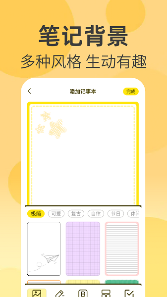 多款精美背景可供选择,支持自定义字体大小与颜色,打造专属的记事本风格。