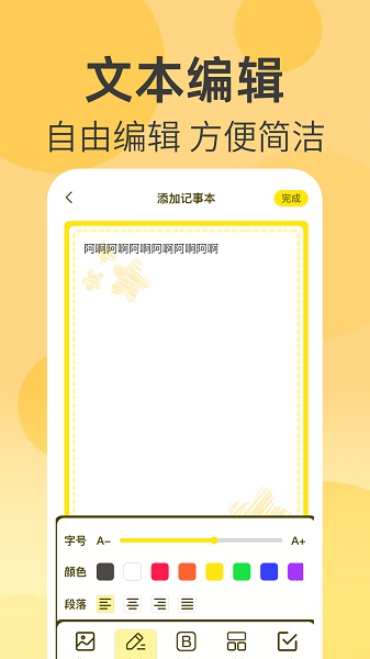 提供丰富的文本编辑工具,如字体大小、粗细、背景颜色、列表等,让笔记更加美观易读。