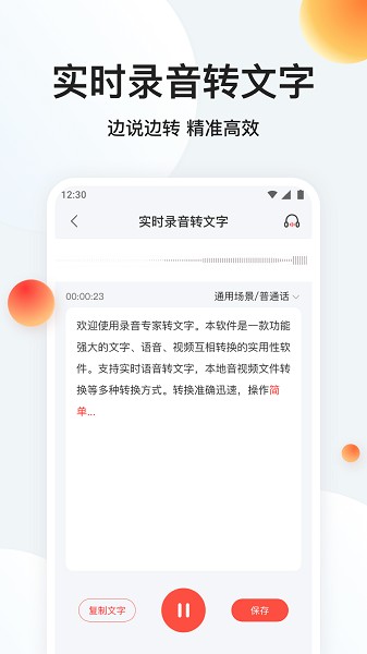 1、利用先进的语音识别技术,可以将实时录音即时转换为文字,适用于会议记录、采访等多种场合。