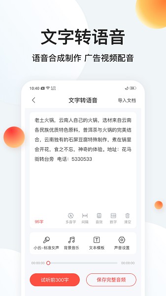 3、提供高质量的文字转语音功能,合成的声音接近真人朗读,可用于制作有声读物或辅助学习材料。