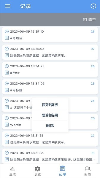 批量文本生成器app为大家带来了非常智能的文本生成工具,能够进行批量的生成,操作起来都非常的方便,想怎么进行使用都是支持的。平台上每次生成的文本都可以自由导出的,想怎么进行复制都可以的,非常的便捷。