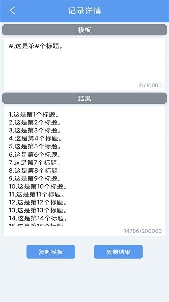 3、持用户自定义变量、递增量以及输出条目的分割符,根据预设模板格式批量生成所需的文本。