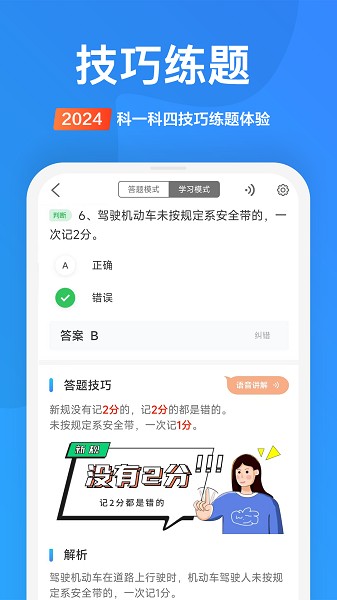 2、通过整合丰富的题库资源、灵活的学习模式和实时的资讯推送,帮助每位学员高效掌握驾考知识。