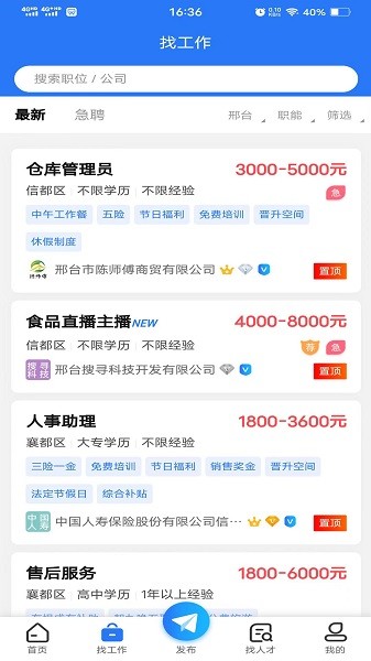 1、为大家带来了邢台本地超多的工作岗位,想什么进行查找都可以。