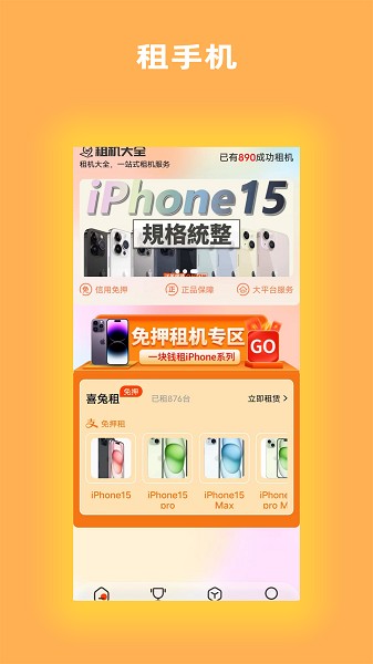 租机大全app最新版为大家提供了一站式的租机服务,都可以根据自己的需求搜索相应的设备,想怎么进行租用都可以的,能够免押金进行租赁了。带来的服务非常的全面,无论怎么进行使用都可以的,日常租赁都非常的轻松了。