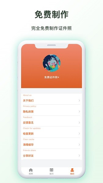 证件照制作完全免费,随意选择照片格式及文件大小,并同时支持电子照、冲印排版照原件本地保存。