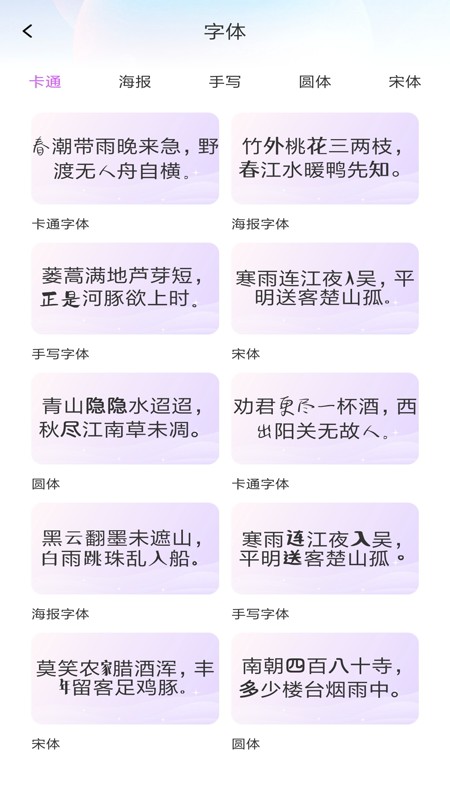 3、提供了庞大的字体库,包括复古风、手写体、科技感、卡通风格等,满足不同用户的审美偏好,能够一键切换字体。