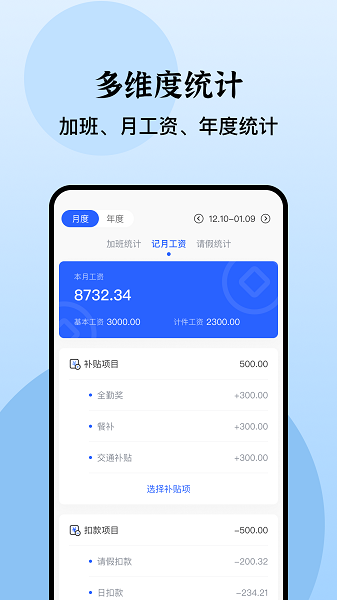 支持正式工、合同工、小时工、综合工时、计件工等四种计薪方式。