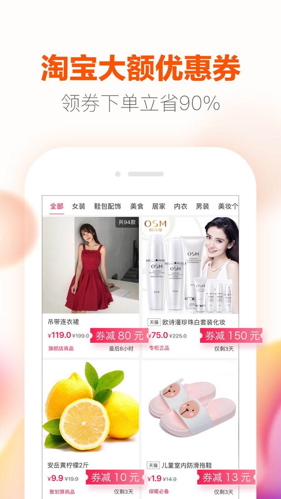 优惠联盟是一款可以提供多种购物体验的手机购物类软件,优惠联盟软件拥有多种不同购物体验,不同商品分类详细丰富,有任何购物需求都可以直接去选择,优惠券一键智能搜索领取,是很不错的优质商城平台,方便用户轻松进行使用。