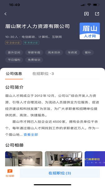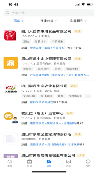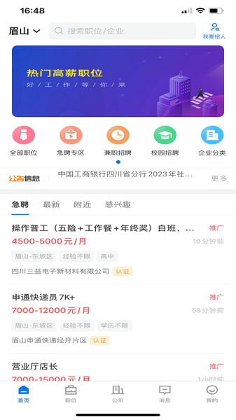 1、平台上整合了多种类型的职位,在眉山本地快速寻找到心仪工作。