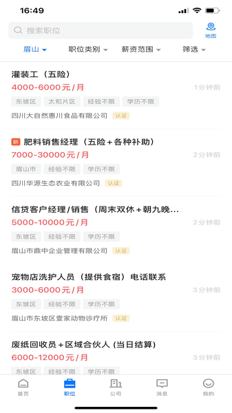 1、可以在眉山本地寻找众多的工作,每天都在不定时更新职位中。