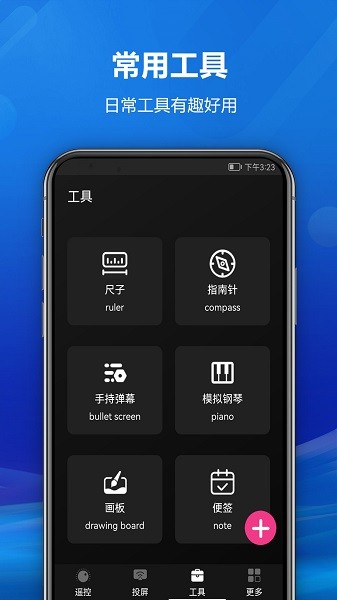 5、提供尺子、指南针、手持弹幕、模拟钢琴、画板、便签等生活常用小工具。