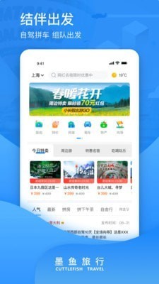 墨鱼旅行是一款可以随时提供多种旅行功能的手机旅行出行类软件,墨鱼旅行软件拥有多种不同旅行功能,平台的所有服务价格都是透明的,可以体验到更好更优质的旅游出行服务,可以为大家提供一系列的出行服务,方便用户轻松进行使用。