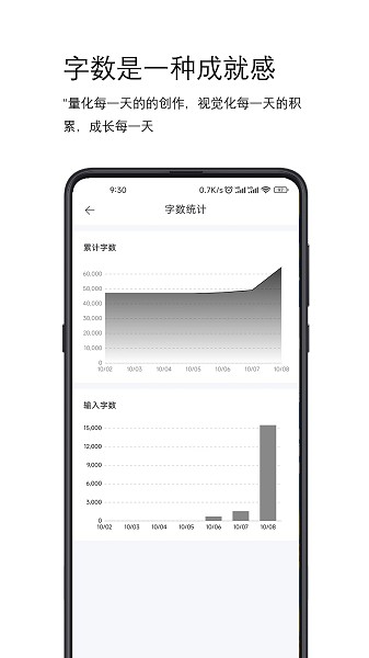 3、大家也可以查看每次写作的字数了,都是会统计的,显示曲线表。