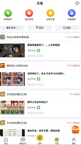 1、玩家可以申请卖号、可以在平台内清楚看到交易流程;