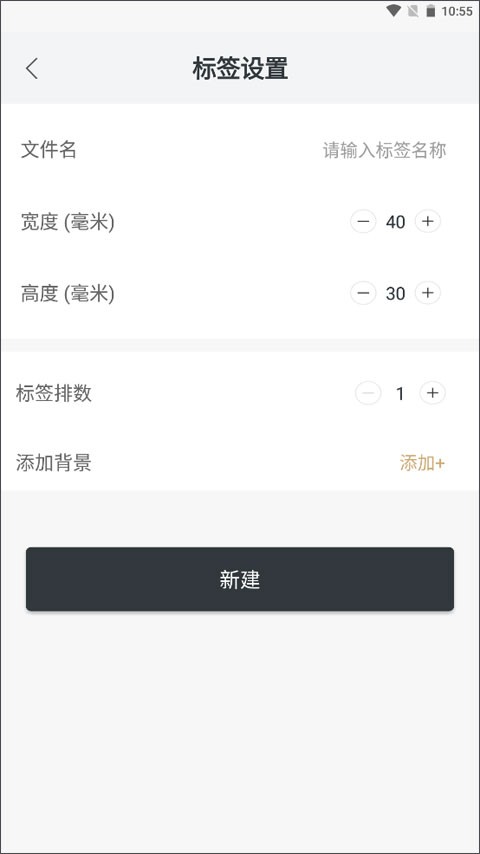 用户可以设置标签名称、纸张排数、输入纸张宽度和高度,以及是否添加纸张背景。