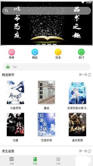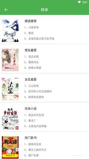 1.软件里面的作品非常丰富,分类详细,排行榜各种。