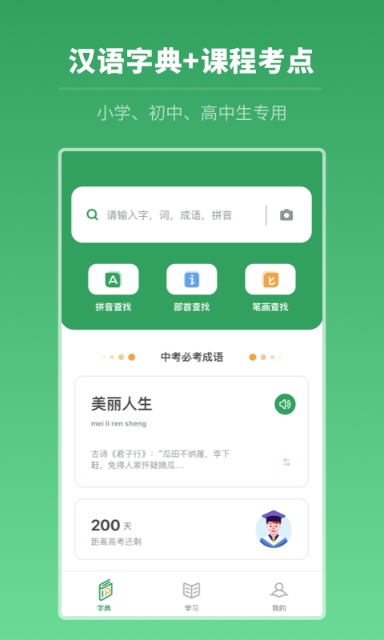 中高考学习字典是一款可以随时带来优质学习资料的手机学习教育类软件,中高考学习字典软件这里面的功能全部都是免费的,可以在这里进行各样的汉字和拼音等搜索,让你可以不断的进行更好的语文学习,可以更好的进行各类语文的学习,带来不同的乐趣可以体验。