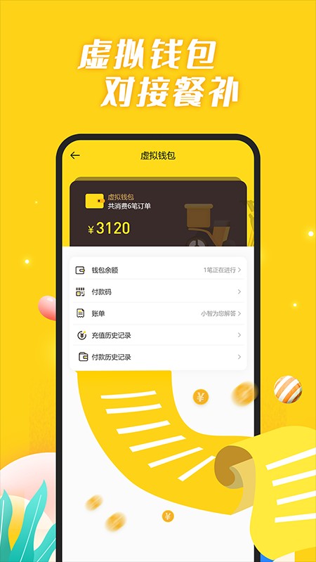 1、虚拟钱包系统与单位餐补或社区积分直接关联,简化了支付流程,为用户提供了一种便捷的资金管理方式,便于追踪消费情况。