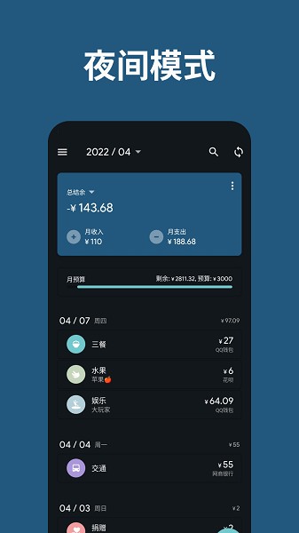 记账助手2024app为大家带来了非常简约的记账本,想怎么开始记账都行的,能够根据自己的需求为账单进行分类的,还可以添加各种备注,之后查找账单都非常的方便,日常也可以将记账本切换为夜间模式,在晚上记账不伤眼。